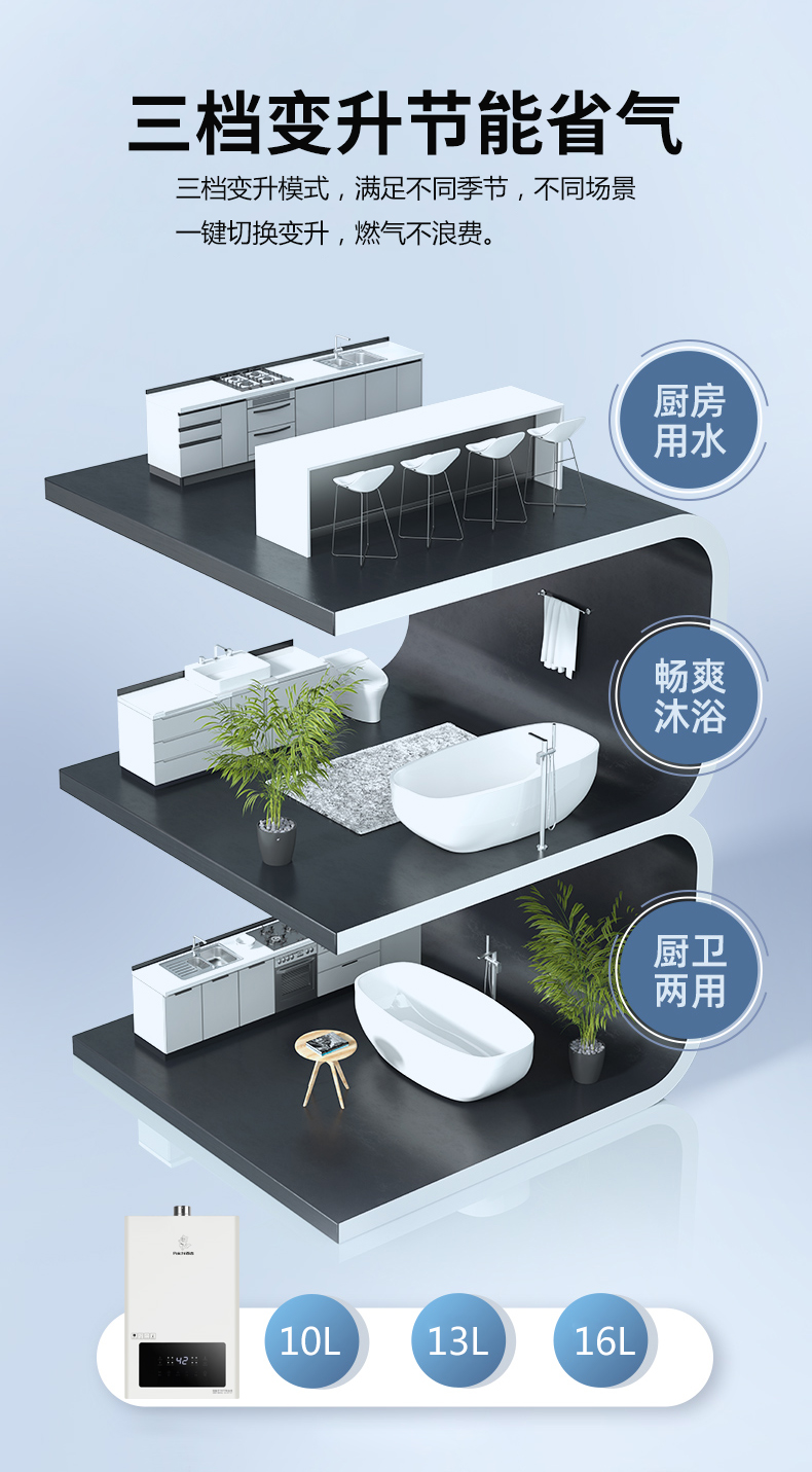 16升零冷水,三檔變升 即開即熱 零等待
