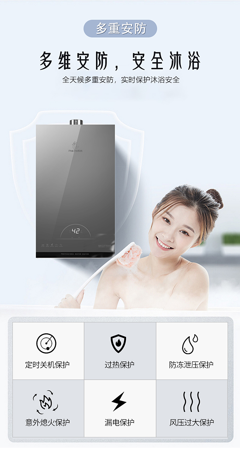 寬頻恒溫 精準(zhǔn)控溫 四分段燃燒 無氧銅水箱 深層凈水 多維安防