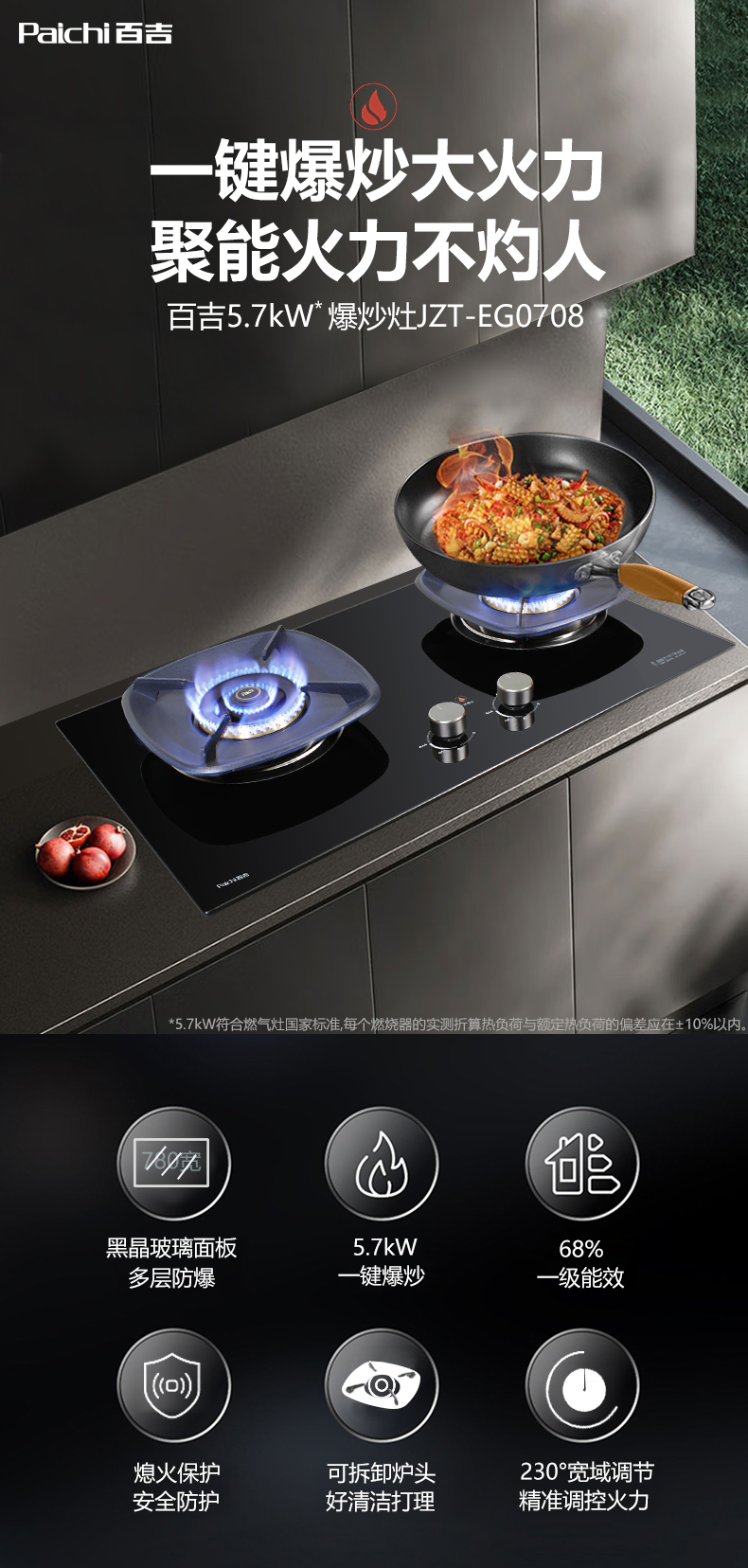 一鍵爆炒5.7kW大火力,68%高熱效率